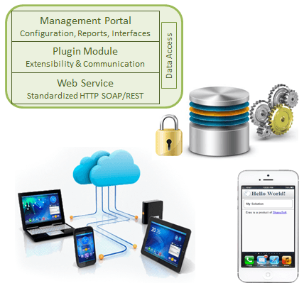 - A hosted web service that is flexible yet consistent so you do not have to learn calling different actions. It supports both SOAP and REST web API protocols over http and https. And it is accessible symmetrically from JAVA, .Net, PHP, JavaScript and Objective-C clients.